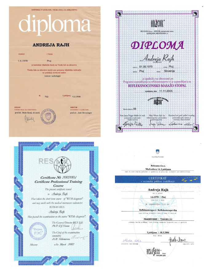- refleksoterapevtka, (šola refleksoterapije Belosana) 2005